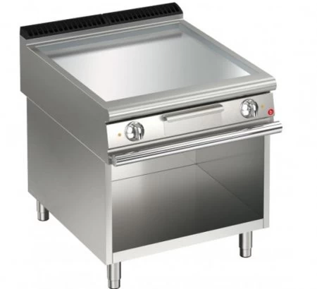 eignen sich zum Braten großer Mengen bei gleichmäßiger Temperatur. Die Elektromodelle verfügen über gepanzerte Edelstahlheizkörper mit erhöhter Leistung. Die hartverchromten Modelle sind mit einem Thermostatventil zur Regelung der Temperatur im Bereich 100 bis 280 °C ausgestattet. Die abnehmbare Frontblende sorgt für servicefreundlichen Zugriff, die geschwungene Form sowie die ergonomisch schräggestellten Knebel reduzieren Schmutzablagerungen. Die Geräte der Serie 900Q sind IPX5 Strahlwassergeschützt produziert.