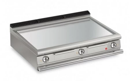 eignen sich zum Braten großer Mengen bei gleichmäßiger Temperatur. Die Elektromodelle verfügen über gepanzerte Edelstahlheizkörper mit erhöhter Leistung. Die hartverchromten Modelle sind mit einem Thermostatventil zur Regelung der Temperatur im Bereich 100 bis 280 °C ausgestattet. Die abnehmbare Frontblende sorgt für servicefreundlichen Zugriff, die geschwungene Form sowie die ergonomisch schräggestellten Knebel reduzieren Schmutzablagerungen. Die Geräte der Serie 900Q sind IPX5 Strahlwassergeschützt produziert.
