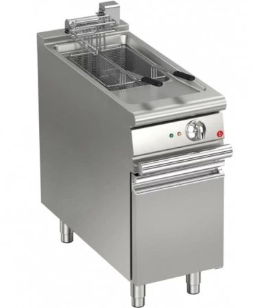 eignen sich zum Fritieren großer Mengen. Durch die großzügige „Kaltzone“ sorgt die Friteuse für Energie- und Ölersparnis sowie Zeitersparnis bei der Reinigung.Die Deckplatte ist aus einer dicken Edelstahlplatte gepresst. Die gepanzerten Heizkörper aus Edelstahl sind zur Reinigung komplett herausschwenkbar. Die abnehmbare Frontblende sorgt für servicefreundlichen Zugriff, die geschwungene Form sowie die ergonomisch schräggestellten Knebel reduzieren Schmutzablagerungen.