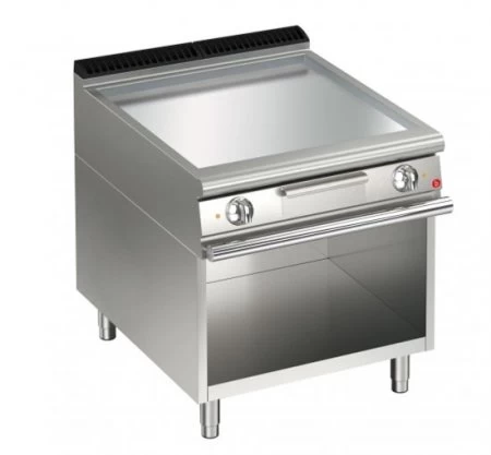 eignen sich zum Braten großer Mengen bei gleichmäßiger Temperatur. Die Elektromodelle verfügen über gepanzerte Edelstahlheizkörper mit erhöhter Leistung. Die hartverchromten Modelle sind mit einem Thermostatventil zur Regelung der Temperatur im Bereich 100 °C bis 280 °C ausgestattet. Die abnehmbare Frontblende sorgt für servicefreundlichen Zugriff, die geschwungene Form sowie die ergonomisch schräggestellten Knebel reduzieren Schmutzablagerungen.