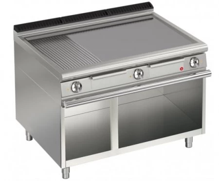 eignen sich zum Braten großer Mengen bei gleichmäßiger Temperatur. Die Elektromodelle verfügen über gepanzerte Edelstahlheizkörper mit erhöhter Leistung. Die hartverchromten Modelle sind mit einem Thermostatventil zur Regelung der Temperatur im Bereich 100 °C bis 280 °C ausgestattet. Die abnehmbare Frontblende sorgt für servicefreundlichen Zugriff, die geschwungene Form sowie die ergonomisch schräggestellten Knebel reduzieren Schmutzablagerungen.