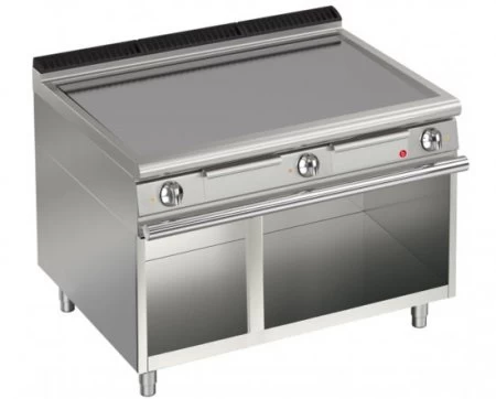 eignen sich zum Braten großer Mengen bei gleichmäßiger Temperatur. Die Elektromodelle verfügen über gepanzerte Edelstahlheizkörper mit erhöhter Leistung. Die hartverchromten Modelle sind mit einem Thermostatventil zur Regelung der Temperatur im Bereich 100 °C bis 280 °C ausgestattet. Die abnehmbare Frontblende sorgt für servicefreundlichen Zugriff, die geschwungene Form sowie die ergonomisch schräggestellten Knebel reduzieren Schmutzablagerungen.
