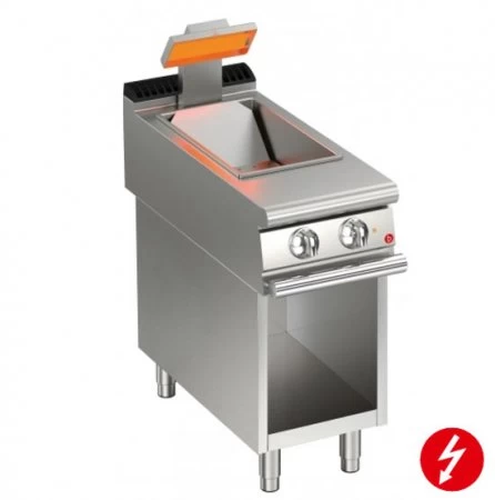 dient dazu, Frittiertes warm und knusprig zu halten. Die abnehmbare Frontblende sorgt für servicefreundlichen Zugriff , die geschwungene Form sowie die ergonomisch schräggestellten Knebel reduzieren Schmutzablagerungen. Die Geräte der Serie 900Q sind IPX5 Strahlwassergeschützt produziert.