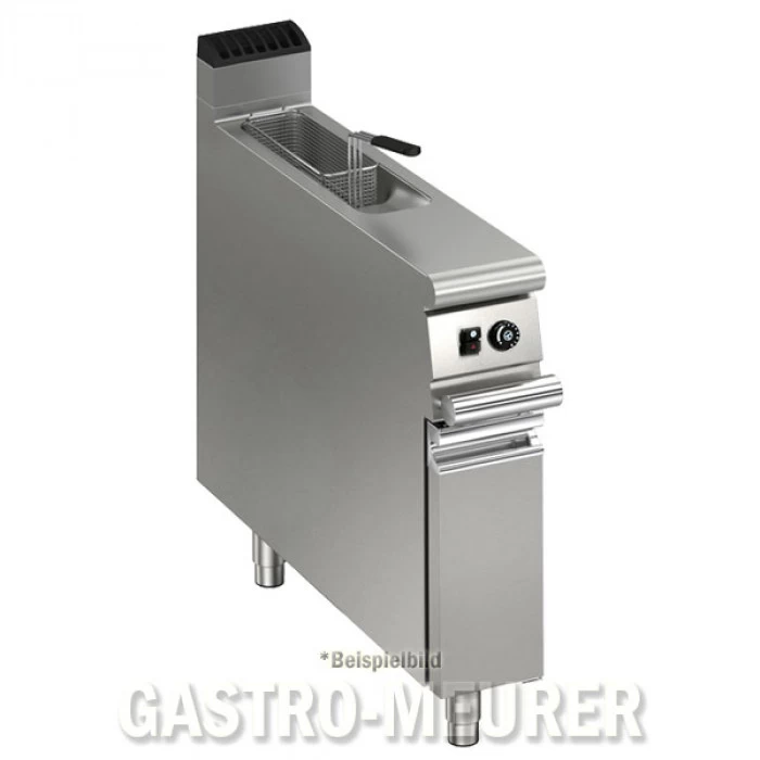 eignen sich zum Fritieren großer Mengen. Durch die großzügige „Kaltzone“ sorgt die Friteuse für Energie- und Ölersparnis sowie Zeitersparnis bei der Reinigung. Die Deckplatte ist aus einer dicken Edelstahlplatte gepresst, die Fackelbrenner befinden sich außerhalb der Wanne und werden mittels Funkenzündung gezündet. Die abnehmbare Frontblende sorgt für servicefreundlichen Zugriff, die geschwungene Form sowie die ergonomisch schräggestellten Knebel reduzieren Schmutzablagerungen.