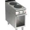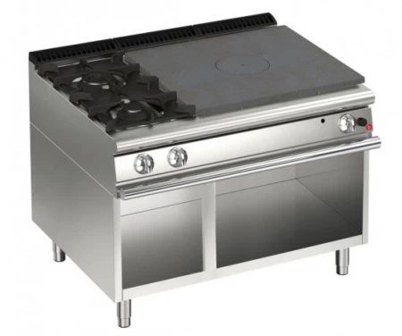 verfügen über einen zentralen hochleistungsfähigen Brenner. Im Zentrum (mit abnehmbarer Mittelscheibe) erreicht der Anwender Temperaturen bis 500°C. Die Temperatur nimmt nach außen hin ab, wodurch sich diese Bereiche ideal zum langsamen Garen und Warmhalten von Speisen eignen. Die Gasmodelle bestehen aus einer geschliffenen Gusseisenplatte mit Gasbrenner mit Piezozündung. Die abnehmbare Frontblende sorgt für servicefreundlichen Zugriff, die geschwungene Form sowie die ergonomisch schräggestellten Knebel reduzieren Schmutzablagerungen.