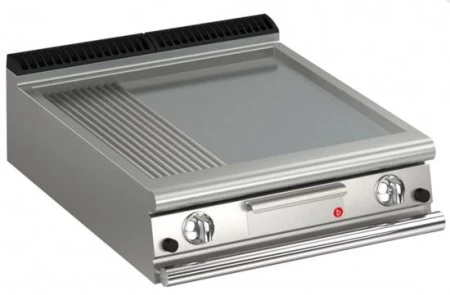 eignen sich zum Braten großer Mengen bei gleichmäßiger Temperatur. Die Gasmodelle sind mit Gasbrenner mit Piezozündung ausgestattet und regeln von 200 °C bis 400 °C. Die hartverchromten Modelle sind mit einem Thermostatventil zur Regelung der Temperatur im Bereich 100 °C bis 280 °C ausgestattet. Die abnehmbare Frontblende sorgt für servicefreundlichen Zugriff, die geschwungene Form sowie die ergonomisch schräggestellten Knebel reduzieren Schmutzablagerungen.
