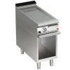 eignen sich zum Braten großer Mengen bei gleichmäßiger Temperatur. Die Gasmodelle sind mit Gasbrenner mit Piezozündung ausgestattet und regeln von 200 °C bis 400 °C. Die hartverchromten Modelle sind mit einem Thermostatventil zur Regelung der Temperatur im Bereich 100 °C bis 280 °C ausgestattet. Die abnehmbare Frontblende sorgt für servicefreundlichen Zugriff, die geschwungene Form sowie die ergonomisch schräggestellten Knebel reduzieren Schmutzablagerungen.