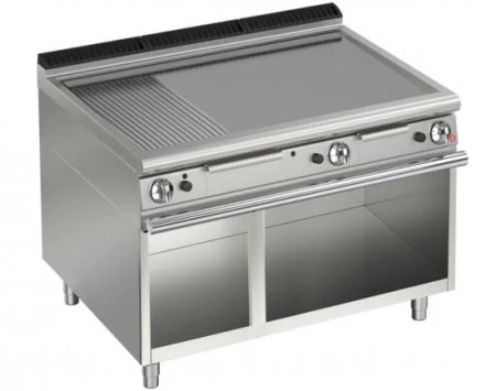 eignen sich zum Braten großer Mengen bei gleichmäßiger Temperatur. Die Gasmodelle sind mit Gasbrenner mit Piezozündung ausgestattet und regeln von 200 °C bis 400 °C. Die hartverchromten Modelle sind mit einem Thermostatventil zur Regelung der Temperatur im Bereich 100 °C bis 280 °C ausgestattet. Die abnehmbare Frontblende sorgt für servicefreundlichen Zugriff, die geschwungene Form sowie die ergonomisch schräggestellten Knebel reduzieren Schmutzablagerungen.