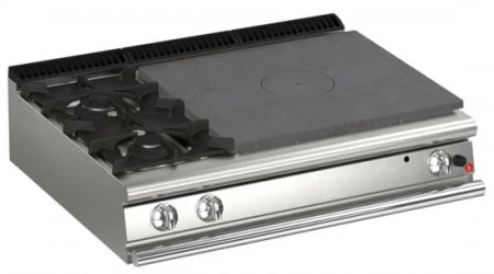 verfügen über einen zentralen hochleistungsfähigen Brenner. Im Zentrum (mit abnehmbarer Mittelscheibe) erreicht der Anwender Temperaturen bis 500 °C. Die Temperatur nimmt nach außen hin ab, wodurch sich diese Bereiche ideal zum langsamen Garen und Warmhalten von Speisen eignen. Die Gasmodelle bestehen aus einer geschliffenen Gusseisenplatte mit Gasbrenner mit Piezozündung. Die abnehmbare Frontblende sorgt für servicefreundlichen Zugriff, die geschwungene Form sowie die ergonomisch schräggestellten Knebel reduzieren Schmutzablagerungen. Die Geräte der Serie 900Q sind IPX5 Strahlwassergeschützt produziert.