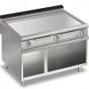 verfügen über einen zentralen hochleistungsfähigen Brenner. Im Zentrum (mit abnehmbarer Mittelscheibe) erreicht der Anwender Temperaturen bis 500°C. Die Temperatur nimmt nach außen hin ab, wodurch sich diese Bereiche ideal zum langsamen Garen und Warmhalten von Speisen eignen. Die Gasmodelle bestehen aus einer geschliffenen Gusseisenplatte mit Gasbrenner mit Piezozündung. Der Garraum beim Gasbackofen ist wärmeisoliert und mit 3 Umkippschutzführungen für Gastronorm-Behälter 2/1 ausgerüstet. Die Back muffel hat einen Strahlungsboden aus Gusseisen von großer Dicke für eine effiziente Wärmeverteilung. Die Geräte der Serie 900Q sind IPX5 Strahlwassergeschützt produziert.