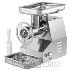 Der Fleischwolf mit extra großem Einfüllschacht und belüftetem Motor schafft bis zu 500 kg pro Stunde. Die abnehmbare Zerkleinerungseinheit ermöglicht eine HACCP-konforme Zwischenlagerung im Kühlschrank.
