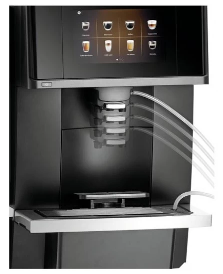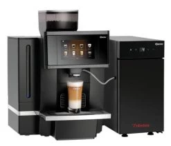 Mit bis zu 23 individuell programmierbaren Kaffee-Variationen, einem Festwasseranschluss und einem 6 Liter Wassertank bietet die clevere Variante des KV1 höchsten Kaffeegenuss bei einfacher, intuitiver Touch-Bedienung. Das individuell bespielbare 7-Zoll-Werbedisplay lädt in Kombination mit dem eleganten Design ganz automatisch zu einem frisch gebrühten Espresso, Cappuccino, Latte Macchiato und Co.