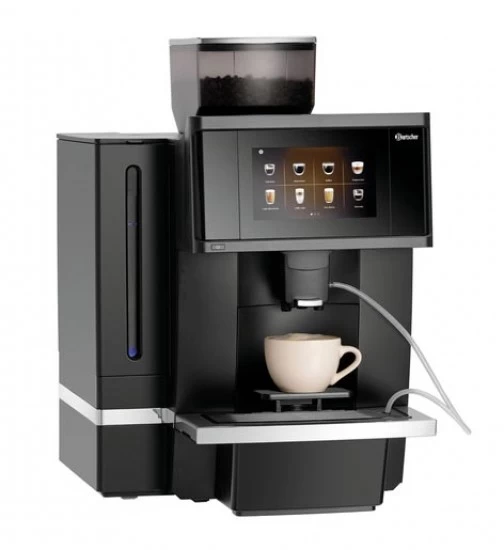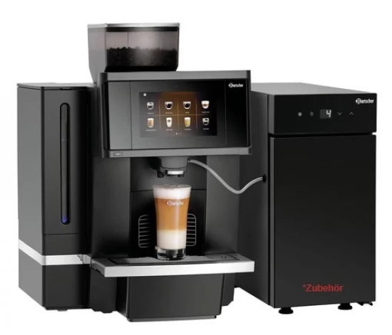 | Eigenschaften | Tassenzähler (pro Programm u. insgesamt) Speicher der Reinigungszyklen Kaffee- und Milchschaumzubereitung parallel möglich Bodenplatte mit Ausschnitt für einen automatischen Trester-Auswurf (in Verbindung mit dem Trester-Auswurfschacht KV1 – optional erhältlich) |