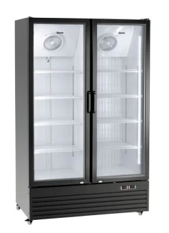 Kombination aus Kühlschrank und Tiefkühlschrank im ansprechenden schwarzen Design mit einem Fassungsvermögen von 820 Litern. Die Glastüren ermöglichen einen direkten Einblick auf die Speisen, die durch die separat schaltbare LED-Beleuchtung ins rechte Licht gerückt werden können.