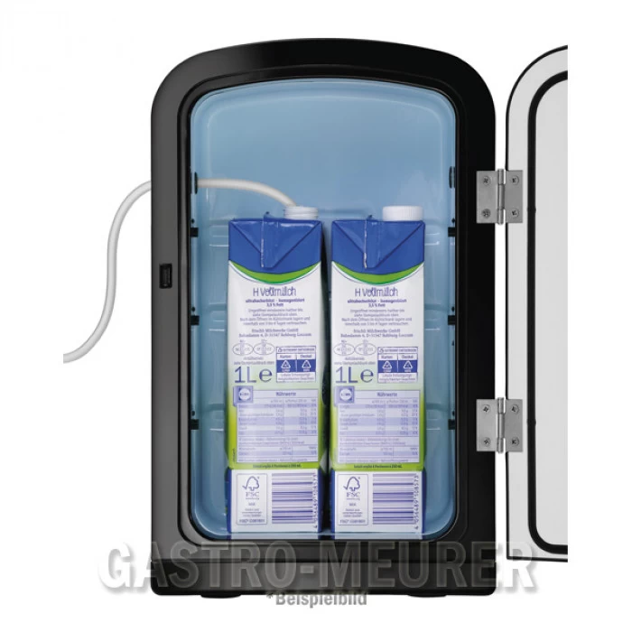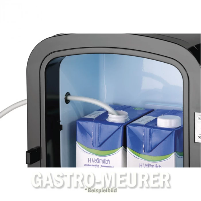 Klein im schicken Design – Ein echter Blickfang in Büros, Teeküchen oder den kleineren Selfservice-Kaffeebereich. Der thermoelektrische Kühlschrank fasst 2 Tetra Paks® Milch und ist mit den beiden seitlichen Milchschlauchöffnungen die ideale Ergänzung für Kaffeevollautomaten.