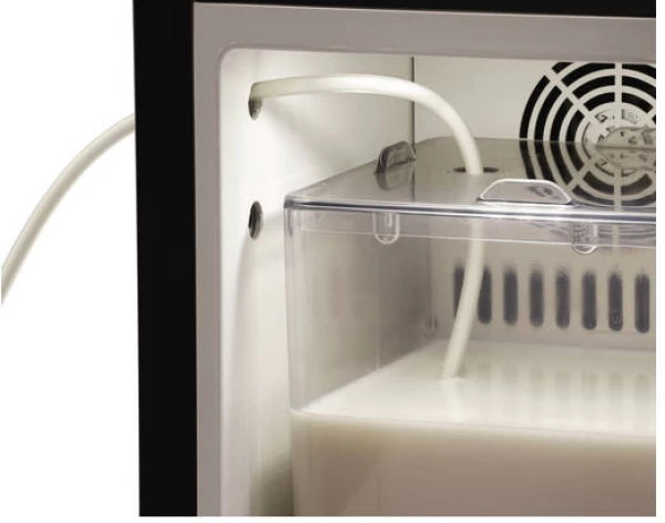 Befüllt mit bis zu 4,5 Litern Milch oder bestückt mit Milchbeuteln ist der Milchbehälter die perfekte Ergänzung zum Milchkühlschrank KV8,1L. Über die Öffnung im Deckel wird die gekühlte Milch für Cappuccino, Milchkaffee, Latte Macchiato und Co. direkt aus dem Behälter gezogen.