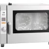 Im Dampf-, Heißdampf- und Regenerierprogramm erfolgt die Dampfzufuhr bedarfsgerecht und ohne manuelle Voreinstellung, schonendes Biogaren ist möglich. Der Feuchteanteil des Garraums kann stufenweise reduziert werden (Crisp&Tasty); integrierte Beschwadung.