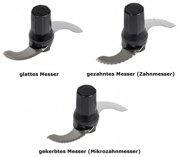 Mit den verschiedenen Messern, glatt oder mikrogezahnt, können Sie viele Lebensmittel, ob roh oder gekocht, besonders fein pürieren und perfekte Mahlzeiten für Ihre Gäste in Form bringen.