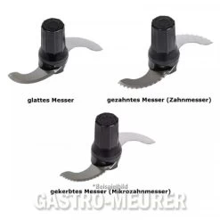 Mit den verschiedenen Messern, glatt oder mikrogezahnt, können Sie viele Lebensmittel, ob roh oder gekocht, besonders fein pürieren und perfekte Mahlzeiten für Ihre Gäste in Form bringen.