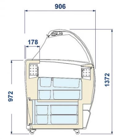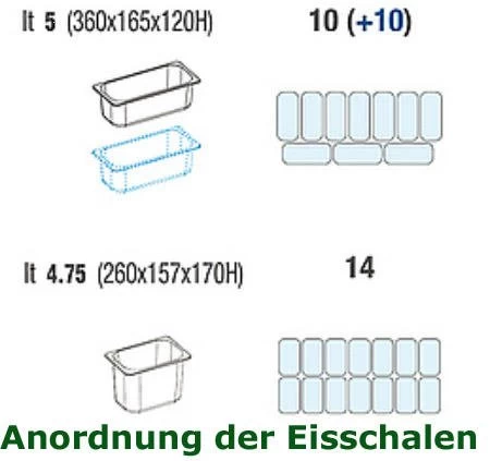 - extra hohe Innenwanne für Eisschalen bis 240 mm Höhe oder Eisschalen mit einer Höhe von 120 mm in doppelter Lage