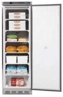 | Dieser abschließbare Gefrierschrank hat eine optimale Raumnutzung und bietet zugleich ausreichende Kapazität in weniger anspruchsvollen professionellen Küchen. Mit präziser digitalen LED-Temperaturanzeige, robustes einfach zu reinigendes Edelstahlgehäuse und sechs festen Rosten. Der Gefrierschrank ist hat praktische Räder an der Rückseite und höhenverstellbare Füße an der Vorderseite. Die maximale Umgebungstemperatur liegt bei 32°C. |