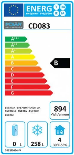 | Nutzinhalt: Breite: Höhe: Tiefe: Material außen: Material innen: Spannung: Temperatur: Kältemittel: | 258 Liter 60 cm 185 cm 60 cm Edelstahl Kunstoff 230 V / 185W -10° / -25°C R600a | Umgebungstemperatur: Gewicht: Isolierung: Stecker: Temperaturanzeige: Fahrbar: | 5°C bis 32°C 74,0 kg 60 mm ja Digital Rollen hinten |