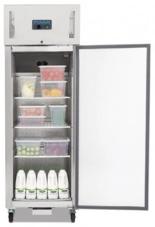 | Leistungsstark und zuverlässig. Dieser hochwertige Kühlschrank ist die ideale freistehende Kühlung für Großküchen. Groß genug für GN2/1-Behälter, mit drei starken Roste und eine solide abschließbare, selbstschließende Tür. Der Kühlschrank ist gefertigt aus robustem Edelstahl und Aluminum und ist ausgestattet mit strapazierfähigen Lenkrollen, damit er leicht zu reinigen und transportieren ist. Die benutzerfreundliche Bedienung und das digitale Display bieten eine präzise Temperaturregelung. Der perfekte kommerzielle Kühlschrank für Restaurants, Imbissbuden, Schulen, Cafés, Hotels und Kantinen. |