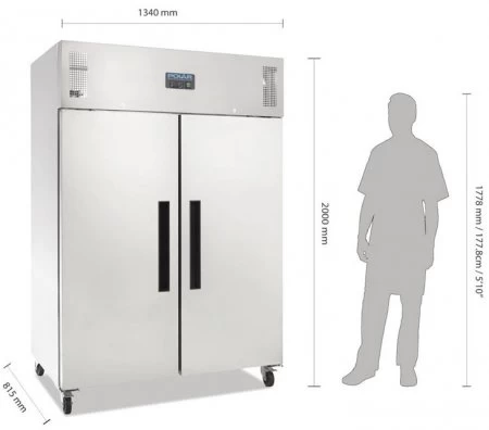 | Dieser professioneller zweitüriger Kühlschrank der Marke Polar bietet eine große Lagerungskapazität von 770 Litern und ist kompatibel mit GN2/1-Behältern. Ausgestattet mit abschließbaren, selbstschließenden Doppeltüren für zusätzliche Sicherheit, robusten Lenkrollen für einfaches Positionieren und eine benutzerfreundliche Bedienung für eine präzise Temperaturregelung. Der Innenraum hat 6 robuste, verstellbare Roste, die eventuell mit GN-Behältern ausgetauscht werden können. Umluftkühlung sorgt für eine schnelle Rückgewinnung der Temperatur. Eine ausgezeichnete Wahl für die professionelle Küche. |