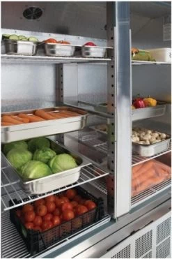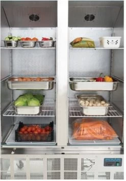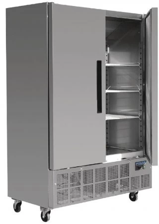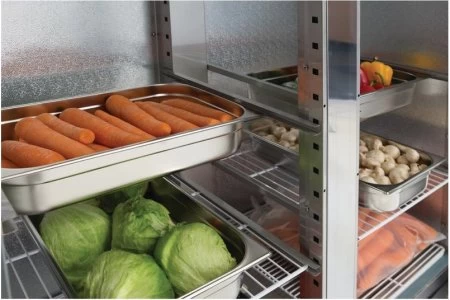 | Slimline zweitürige Kühlungen ideal bei wenig Raum. Boden platziertes Kühlsystem saugt die Luft aus den kältesten Teil der Küche. Abschließbare und selbstschließende Türen. Geeignet für leichte bis mittlere Nutzung. Ausgestattet mit vollautomatischen Controller. Edelstahlgehäuse, Aluminiuminnenseite. Feststellbare Rollen. -frei. Digitaldisplay. Semi-automatische Abtauung mit Abtau-Intervall. Bitte beachten Sie: Die Umgegungstemperatur darf 32°C nicht überschreiten. |
