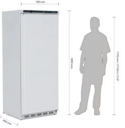 | Nutzinhalt: Breite: Höhe: Tiefe: Material: Spannung: Temperatur: Kältemittel: | 513 Liter 78,0 cm 189,0 cm 69,5 cm Stahl, weiß Lackiert 230 V / 185W 2° / 8°C R600a | Umgebungstemperatur: Gewicht: Stecker: Temperaturanzeige: Fahrbar: | 5°C bis 32°C 90,0 kg ja, im Lieferumfang Digital Rollen hinten |