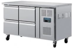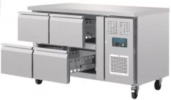 | Polar Kühltisch mit 4 Schubladen 314 L Mit seiner ausgezeichneten Funktionalität und Langlebigkeit ist dieser Polar-Kühltisch ein Muss für jede beschäftigte kommerzielle Küche. Mit vier GN 1/1-kompatiblen Schubladen und Zwangskühlung ist diese vielseitige Thekenanlage perfekt im Stande, Ihre Zutaten und vorbereiteten Speisen in sogar den heißesten Küchen zu kühlen. Auf der platzeffizienten Arbeitsfläche können auch andere Geräte gestellt werden. Hergestellt aus strapazierfähigem Edelstahl und geeignet für schwere kommerzielle Nutzung. |
