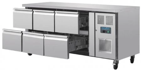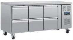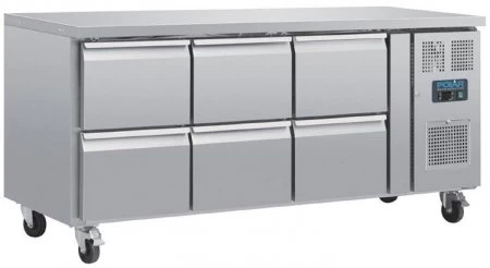 | Polar Kühltisch mit 6 Schubladen 465L Mit seiner ausgezeichneten Funktionalität und Langlebigkeit ist dieser Polar-Kühltisch ein Muss für jede beschäftigte kommerzielle Küche. Mit sechs GN1/1-kompatiblen Schubladen und Zwangskühlung ist diese vielseitige Thekenanlage perfekt im Stande, Ihre Zutaten und vorbereiteten Speisen in sogar den heißesten Küchen zu kühlen. Auf der platzeffizienten Arbeitsfläche können auch andere Geräte gestellt werden. Hergestellt aus strapazierfähigem Edelstahl und geeignet für schwere kommerzielle Nutzung. |