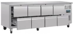| Polar Kühltisch mit 8 Schubladen 616L Mit seiner ausgezeichneten Funktionalität und Langlebigkeit ist dieser Polar-Kühltisch ein Muss für jede beschäftigte kommerzielle Küche. Mit acht GN1/1-kompatiblen Schubladen und Zwangskühlung ist diese vielseitige Thekenanlage perfekt im Stande, Ihre Zutaten und vorbereiteten Speisen in sogar den heißesten Küchen zu kühlen. Auf der platzeffizienten Arbeitsfläche können auch andere Geräte gestellt werden. Hergestellt aus strapazierfähigem Edelstahl und geeignet für schwere kommerzielle Nutzung. |