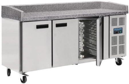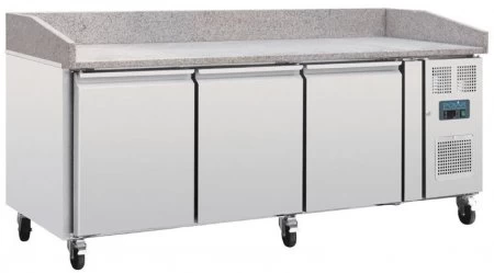 | Polar Patisserie Vorbereitungskühltisch 3-türig mit Marmorarbeitsfläche Pizza, Wraps oder Sandwiches – der 3türige Vorbereitungskühltisch von Polar bietet eine zuverlässige Kühlung neben einer stabilen Zubereitungsfläche aus Mamor. Die Kühlung selbst ist leistungsstark, präzise und ist in der Lage eine Umgebungstemperatur von bis zu 43°C zu meistern. Die Edelstahlkonstruktion und die Marmorabeitsfläche ist einfach zu reinigen. |