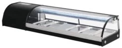 | Perfekt geeignet für jede Sushibar oder alle Restaurants, die frisches Sushi und andere Fischprodukte anbieten. Die GN-Kühlvitrine von Polar garantiert eine überragende Leistung und Funktionalität zu einem günstigen Preis. Mit einer starken statischen Kühlung und einem benutzerfreundlichen digitalen Bedienfeld. Die Vitrine hält Ihre Lebensmittel ständig auf optimaler Temperatur: frisch und bereit zum Servieren. Die Anlage verhindert auch, dass Kondenswasser auf das Sushi tropft. Komplett mit LED-Beleuchtung. Bitte beachten: Gastronorm-Behälter sind separat erhältlich. |