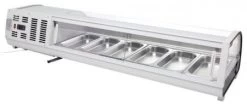 | Die ideale Präsentation für Tapas, Desserts oder Salate. Geeignet für Cafés, Delikatessengeschäfte und viele andere Unternehmen. Die Vitrine hält bis zu sechs GN13-Behälter hygienisch gekühlt und perfekt präsentiert. Mit einer attraktiven, gebogenen Frontscheibe und LED-Beleuchtung hilft diese Tapasvitrine Ihnen dabei, Ihre Kunden zu überzeugen. GN-Behälter separat erhältlich. Bitte beachten: Gastronorm-Behälter sind separat erhältlich. |