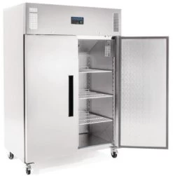 | Suchen Sie einen Gefrierschrank mit hoher Kapazität, der perfekt ist für Ihre professionelle Großküche? Suchen Sie nicht weiter! Dieser Polar-Gefrierschrank mit Doppeltüren wurde speziell entwickelt für die professionelle Küche und bietet viele Eigenschaften für eine problemlose tägliche Nutzung. Der Gefrierschrank verfügt über einen intuitiven digitalen Thermostat und einem digitalen Display, die dafür sorgen, dass die Umluftkühlung die interne Temperatur gleichmäßig hält. Beide Türen sind abschließbar und haben abnehmbare Dichtungen – Perfekt um die Hygiene auf hohem Niveau zu halten. Die äußere Edelstahl-Konstruktion verleiht dem Gefrierschrank mehr Stabilität und Stil, während die robusten Lenkrollen eine einfache Positionierung zum Installieren und Reinigen ermöglichen. Auch ist dieser Gefrierschrank groß genug, um bis zu 20 GN2/1-Behälter mit 100 mm Tiefe zu halten. |