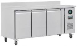 | Polar 3-türiger Edelstahlgefrierschrank mit Spritzschutz 417 l – Die Serie U ist die Spitzenklasse unter den Kühl- und Gefrierschränken von Polar. – Umluftkühlung – leistungsfähige Zwangsbelüftung – semi-automatische Abtauung mit Abtau-Intervall – digitale Anzeige – verstellbare Einlegeböden – selbstschließende Türen (ab einem Winkel von 90°), nicht abschließbar – gebremste Rollen für einfache Bewegung, abnehmbar – 60 mm Isolierung – 10 cm Arbeitsplattenaufkantung hinten – Energieeffizienzklasse: D – jährlicher Energieverbrauch: ca. 3197 kWh/Jahr