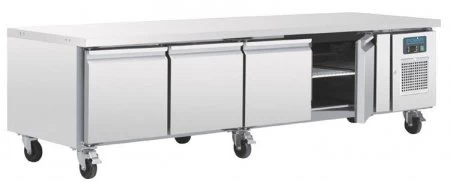 | Polar 4-türiger Kühltisch 420 l Perfekt für jede beschäftigte Küche mit beschränktem Platz -der viertürige Kültisch von Polar bietet hervorragende Leistung, Funktionalität und Langlebigkeit zu einem sehr angemessenen Preis. Dank ihres Zwangskühlsystems sorgt die Anlage für effektive, gleichmäßige und effiziente Kühlung. Ihre Lebensmittel sind immer bei optimaler Temperatur gelagert. Jede Tür hat einen GN1/1-Rost, was den Tisch äußerst vielseitig macht -ideal für beschäftigte Gastronomieumgebungen. Auf der platzeffizienten Arbeitsfläche können auch andere Geräte gestellt und benutzt werden. Hergestellt aus strapazierfähigem Edelstahl und geeignet für schwere kommerzielle Nutzung. – automatische Abtauung – digitales Bedienfeld – selbstschließende Türen – Zwangsbelüftung |