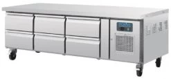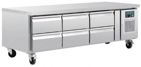 | Polar Kühltisch mit 6 Schubladen 317 l Perfekt für jede beschäftigte Küche mit beschränktem Platz – der Kültisch mit 6 Schubladen von Polar bietet hervorragende Leistung, Funktionalität und Langlebigkeit zu einem sehr angemessenen Preis. Dank ihres Zwangskühlsystems sorgt die Anlage für effektive, gleichmäßige und effiziente Kühlung. Ihre Lebensmittel sind immer bei optimaler Temperatur gelagert. Auf der platzeffizienten Arbeitsfläche können auch andere Geräte gestellt und benutzt werden. Hergestellt aus strapazierfähigem Edelstahl und geeignet für schwere kommerzielle Nutzung. – automatische Abtauung – digitales Bedienfeld – Zwangsbelüftung |
