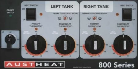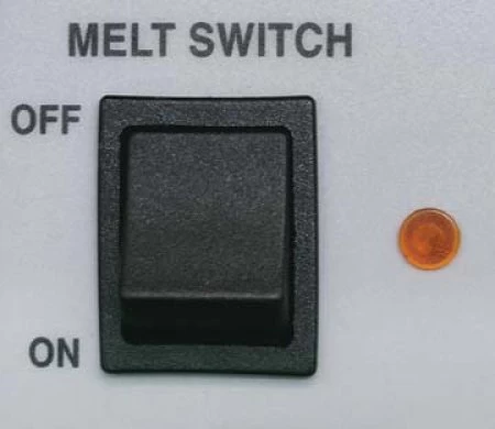 - Jedes Becken besitzt einen Cook (Frittier)/Idle (Leerlauf)-Schalter, mit welchem man schnell zwischen zwei Temperatureinstellungen wechseln kann. Jeder Cook/Idle-Schalter ist mit zwei hinter der unteren Tür untergebrachten Thermostaten verbunden – eines wird mit einer Temperatur zum Frittieren und das zweite mit einer Temperatur für den Leerlauf belegt, wodurch Betriebskosten gesenkt werden können. Die doppelten Thermostate bieten außerdem den Vorteil, eine Sicherung für den unwahrscheinlichen Fall eines Ausfalls des primären Thermostats darzustellen.