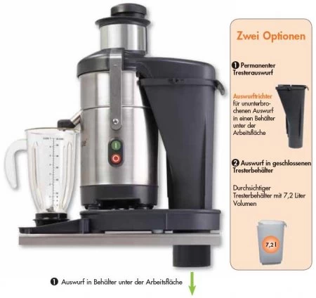 - inkl. Tresterbehälter 7,2 Liter aus Kunststoff und Trichter für ununterbrochenen Auswurf der Rückstände