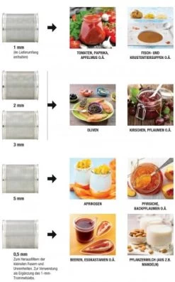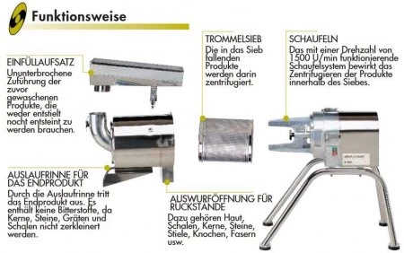 Die automatischen Passiersiebe dienen der Zubereitung von Fruchtsäften, Fruchtfleisch, Gemüsepürees, Saucenfonds sowie Fisch- und Krustentiersuppen.