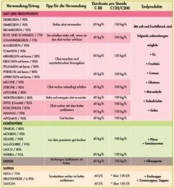 - Verarbeitungsmenge 40 – 60 kg/h je nach Art der Zubereitung