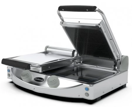 Professionelle Systeme zum Kontaktgaren mit Platten aus Glaskeramik, geeignet zum Garen von einer breiten Palette an verschiedenen Speisen wie: Toasts, belegte Brötchen, Fleisch, Fisch Gemüse, Eier, usw.
